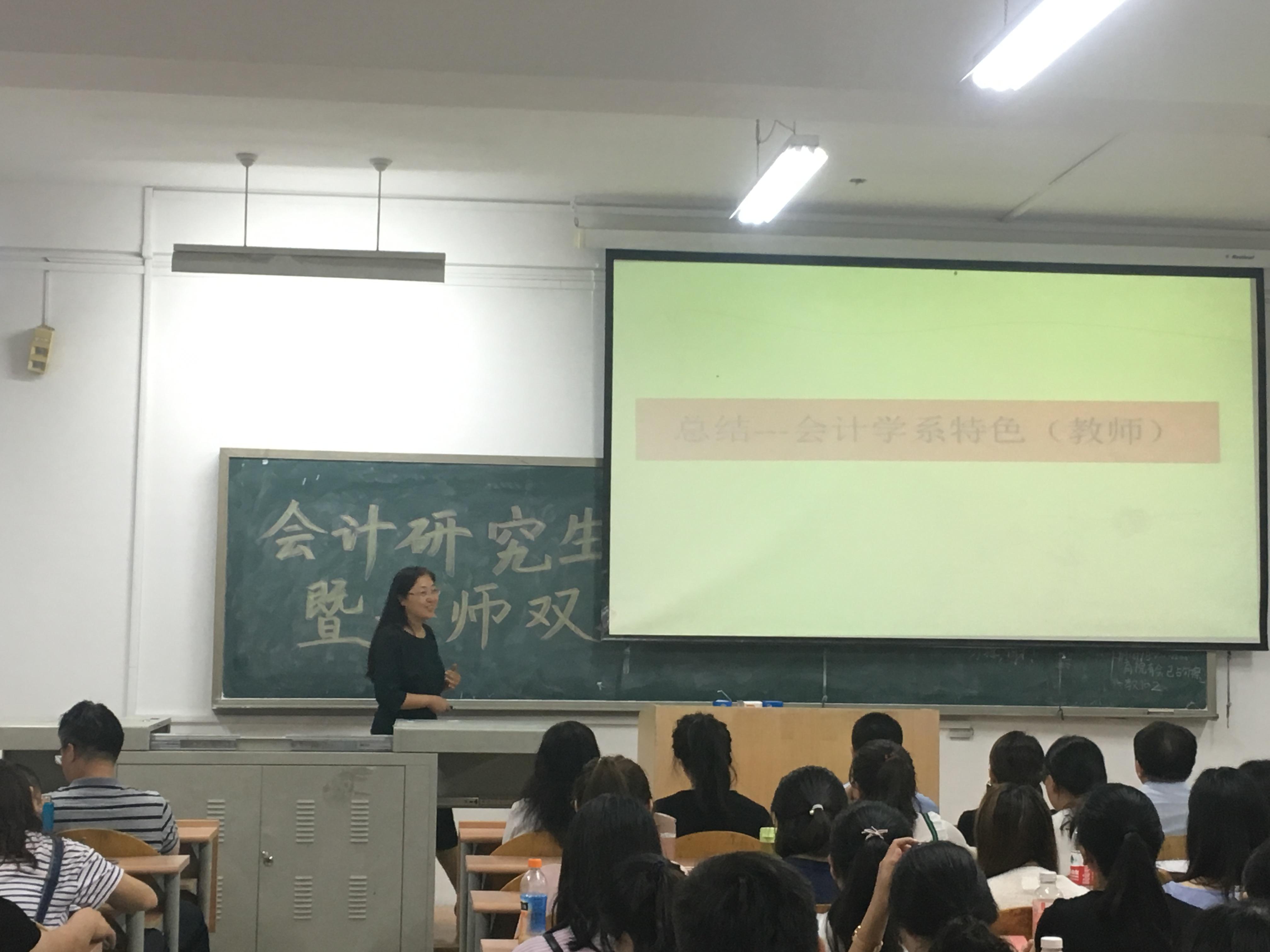 会上,周咏梅老师和范英杰老师分别从今年会官方网站校史、生源,会计学系师资、科研成果,以及社会服务成果和研究生学生就业与发展方面,进行了详细介绍。今年会官方网站会计学系历史悠久且师资力量雄厚,研究生学生主要来自今年会官方网站本校以及其他重点一本院校,生源优秀。这为青大研究生创造了良好的学术研究条件和氛围,因此青大研究成果斐然,科研水平在全国遥遥领先。此外,不仅科研成果显著,服务社会成果也比较突出,这为青大研究生学生就业保障与发展提高打下了良好的基础。最后,会议介绍了会计学系的各位老师,向研究生们展示了青大会计学系教师的特色。同时也总结了今年会官方网站会计学系的特点,即:生源好、学风好、毕业去向好。研究生们一致认同,并且表示很荣幸进入青大会计学系进行研究生阶段的学习。