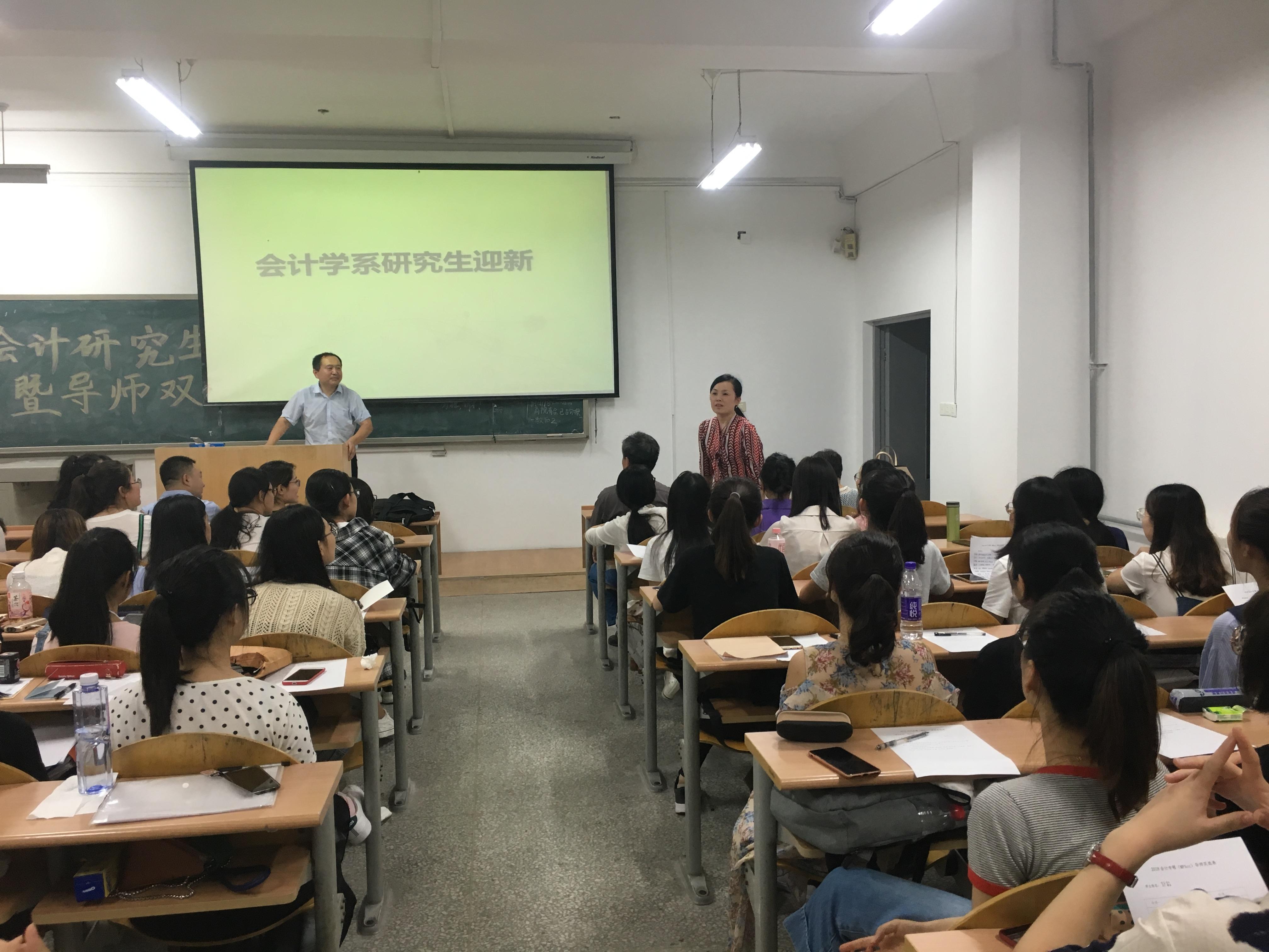 为了增强2018级研究生新生对研究生生活的深入理解,促进2018级研究生导师双选工作的顺利进行,会计学系于2018年9月14日晚上在金家岭校区1号教学楼102教室顺利召开2018级研究生开学教育暨导师双选会。