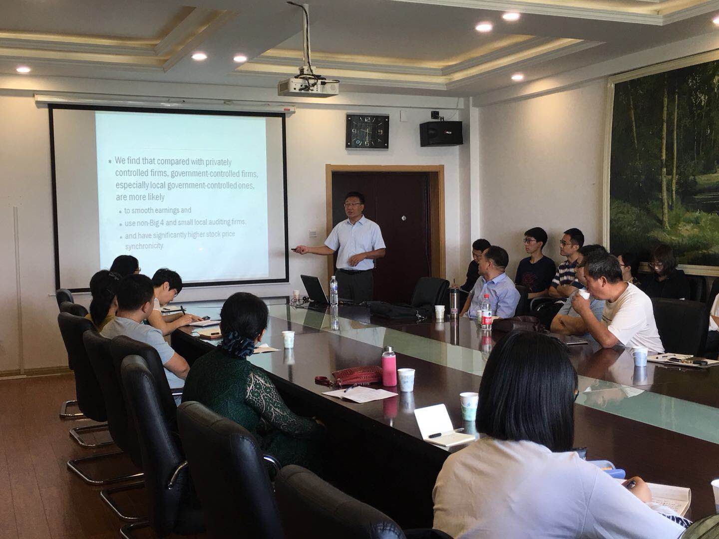 2018年9月27日上午9时,暨南大学管理学院会计系教授、博士生导师李东辉教授应邀在商学院办公楼410进行了题为"Ultimate Ownership,Crash Risk,and Split-share StructureReform in China"的精彩报告,本次讲座由商学院副院长周咏梅老师主持,商学院老师及会计系研究生聆听了此次讲座。