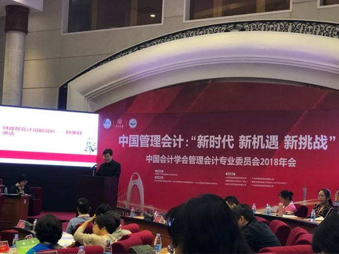 中国会计学会管理会计专业委员会2018年会11月2日在广州鸣泉居会议中心隆重召开,此次会议聚集了管理会计专业学术名家。中山大学副校长杨清华、管理学院刘运国教授对专家学者到来表示欢迎,中国会计学会副会长顾惠忠、财政部会计司副司长舒惠好对大会召开表达了祝愿。来自香港中文大学的顾朝阳教授、北京大学的王立彦教授、东南大学的陈志斌教授、中央财经大学的刘俊勇教授、暨南大学的胡玉明教授、北京工商大学的王斌教授、《会计研究》刘国强等学者及美的集团CFO何运常来等代表进行了主题报告,阐述了新时代、新机遇、新挑战下管理会计如何更好地适应发展。