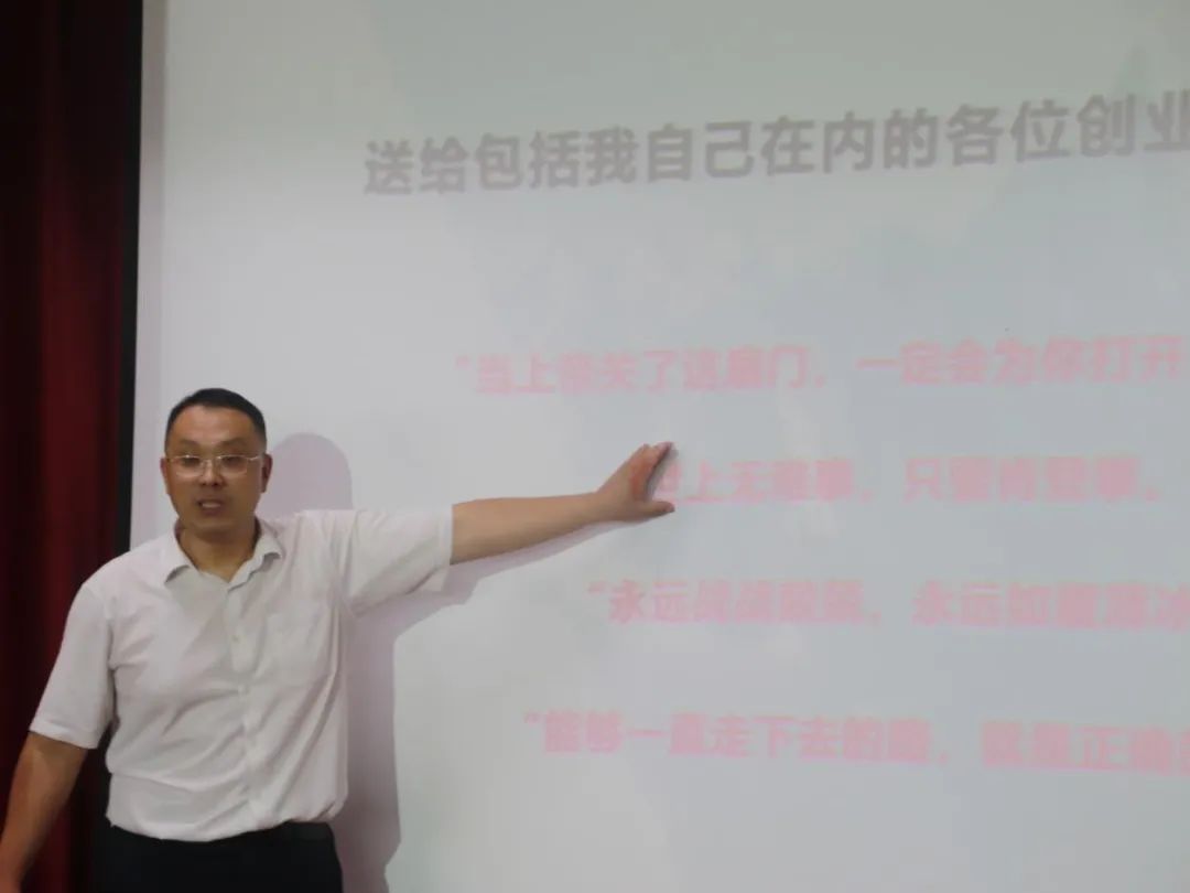 讲座最后,安师兄送给同学们有关创业的四句话:当上帝关了这扇门,一定会为你打开另一扇门;世上无难事,只要肯登攀;永远战战兢兢,永远如履薄冰;能够一直走下去的路,就是正确的路,激励同学们在未来的创新创业中勇敢前行。相信同学们在本次讲座过后,有了更多对创新创业的新认知,也会在未来的创新创业道路上一往无前。